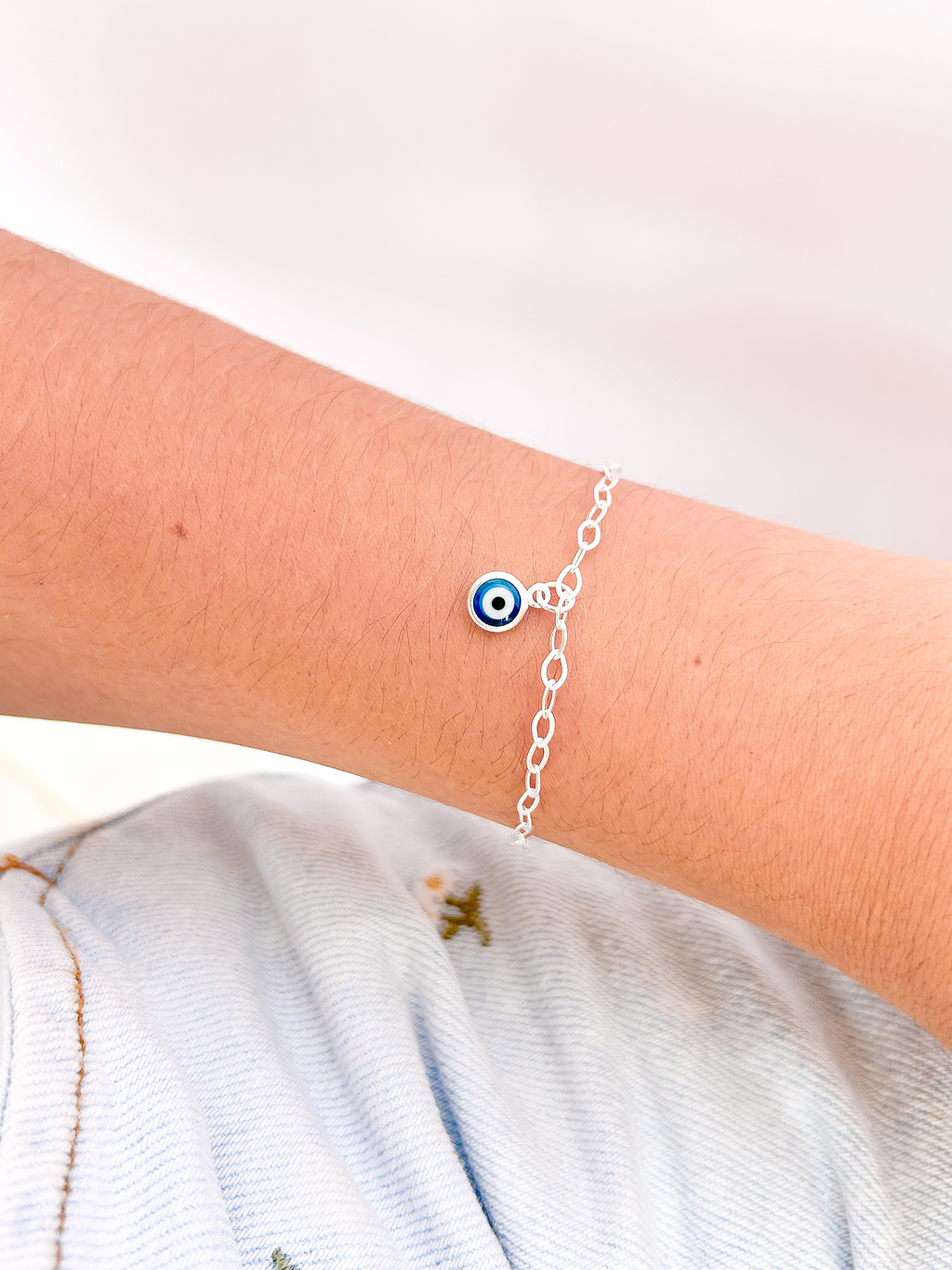 Delicada e com um toque de proteção, esta pulseira em prata 925 traz um pingente de olho grego em formato circular, medindo 8 mm de diâmetro. Símbolo tradicional de boas energias, o olho grego é conhecido por afastar o mau-olhado e atrair positividade e equilíbrio.